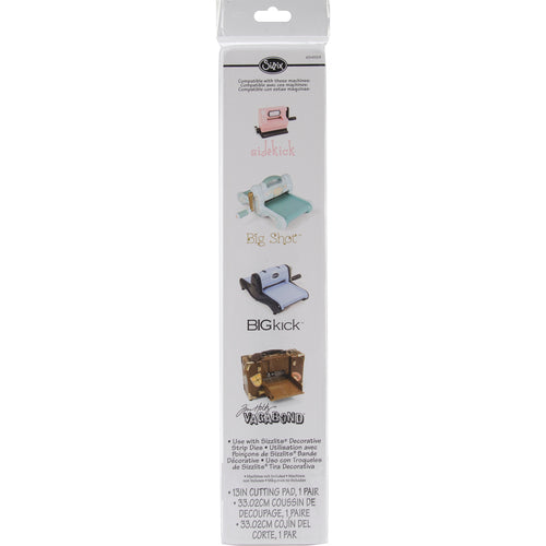 SIZZIX-Sizzix BIGkick/Sidekick Cutting Pads-Decorative strip 13. For die-cutting and embossing with the Sidekick, use a pair (sold together) of 13 Sidekick Cutting Pads. These thick acrylic Cutting Pads create a Sidekick Sandwich for easy die-cutting with Sizzlits Decorative Strips or instant embossing with specially formatted Simple Impressions Sidekick Folders. Available in packs of two. Made in China.