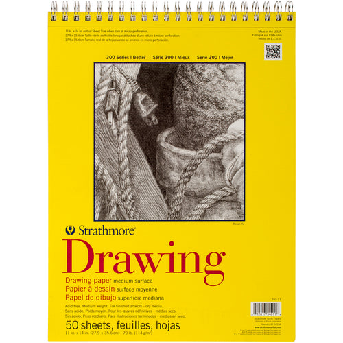 Strathmore-Drawing Paper Pad. A heavy-weight paper with a medium surface ideal for mastering dry media drawing techniques. This package contains one 11x14 inch spiral bound drawing pad with fifty sheets of 70lb acid free drawing papers. Made in USA.