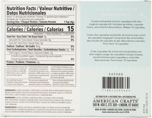 Add color, sparkle, and shine to your next baking project. This 6.5x5 inch package contains one Cupcake Kit that includes sprinkles, cupcake liners, and other colorful decorations to make 12 cupcakes. WARNING: Choking Hazard. Not suitable for children under 3 years. Imported.