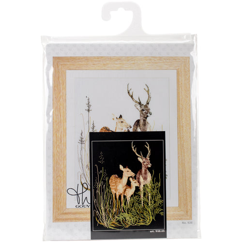 Thea Gouverneur-Aida Counted Cross Stitch Kit: 18 Count. Inspired by nature, these kits are detailed using a variety of colors with results that are realistic and true to nature! This package contains one 15x11-3/4 inch piece of Aida cloth, pre-sorted DMC floss, one John James needle, one easy-to-follow chart and instructions in English. Design: Deer Family. Imported.