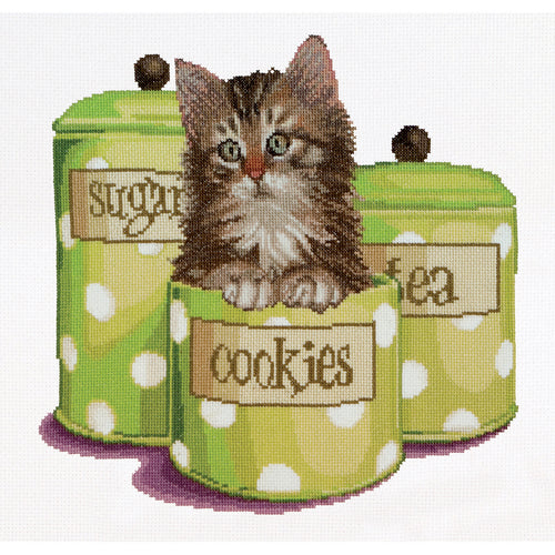 THEA GOUVERNEUR-Cookie Time On Aida Counted Cross Stitch Kit: Sixteen Count. Inspired by nature, these kits are detailed using a variety of colors with results that are realistic and true to nature! The more experienced cross stitcher will enjoy working on linen. This package contains one 12-13/64x11-13/16 inch piece of linen Aida, pre-sorted DMC floss, one John James needle, one easy-to-follow chart and instructions in English. Imported.