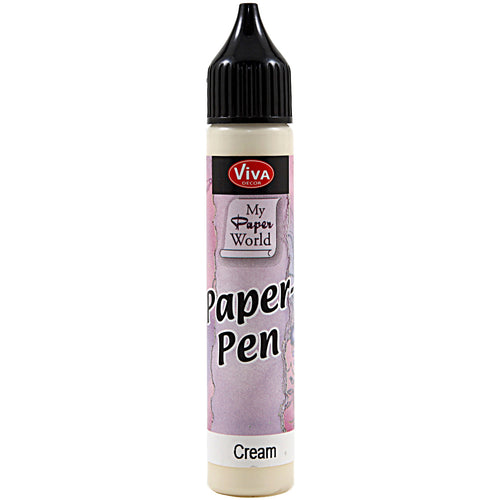 VIVA DECOR-Paper Pen. This creamy pen has a special semi-circular bead-head delivery system to control the size of the pearl, perfect for stenciling. The squeeze tube makes it easy to control the size of droplets. This package contains one 25ml tube of water-based acrylic paint. Available in a variety of colors: each sold separately. Imported.