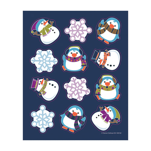 Add a cool, charming touch to your classroom with the Winter Fun shape stickers. Each pack features an assortment of penguins, snowflakes, and snowmen in winter colors and festive patterns. Reward students for hard work and good behavior by adding these seasonal stickers to notes, assignments, and charts. Each pack includes 6 sheets of 12 die-cut stickers for a total of 72 stickers. These shape stickers are acid-free and lignin-free for safe use. Be sure to look for coordinating products to create a cohesive classroom theme and celebrate the season!
