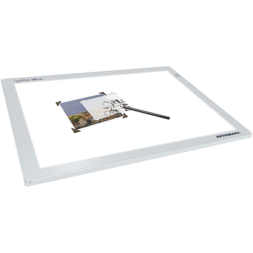 ARTOGRAPH-Lightpad Light Box. Super bright LED lamps provide a perfectly even illuminated surface that's perfect for scrapbooking, calligraphy, sewing, quilting, stenciling, and more. The LED lamps are maintenance free and will last up to 30,000 hours. This light box features a trim 5/8in profile, a durable and attractive aluminum and steel frame, a double-layered firm work surface, and comes with a custom protective storage sleeve. This package contains one 12x17 inch light box with a 10x15 inch lighted work surface, four optional rubber feet, one protective sleeve, and one AC/DC power adapter (UL Listed E241618),and one User's Guide. Imported.