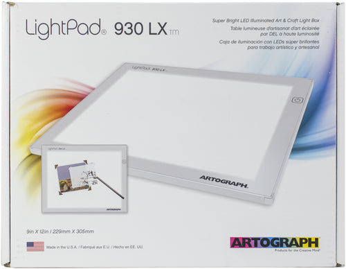 Super bright LED lamps provide a perfectly even illuminated surface that's perfect for scrapbooking, calligraphy, sewing, quilting, stenciling, and more. The LED lamps are maintenance free and will last up to 50,000 hours. This light box features a .5 inch profile, a durable and attractive aluminum and steel frame, a double-layered firm work surface, and comes with a custom protective storage sleeve. This package contains one 14.75x11.75x.5 inch light box with a 9x12 inch lighted work surface, four optional rubber feet, one protective sleeve, and one AC power adapter. Power Input: 100- 240V. Power Output: 12V, and one User's Guide. Imported.