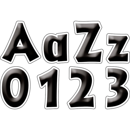 Wow! These Black Tie Affair Pop-Outs are a great new addition to our family of top-selling 4" Letter Pop-Outs! The letters have a 3-D look that will make any decorating project "pop" off the page! They can be used with our Frame-It or Black & White Dot products! Super chic and easy to read, they are perfect for your next project, presentation, report, poster, or display! The set includes 255 letters, punctuation marks and numbers in black with white accents creating the 3-D effect. Our Black Tie Affair letters look amazing and coordinate great with our Frame-It and top-selling Dot decor, too. Here's what you get: A = 3, B = 2, C = 3, D = 3, E = 3, F = 3, G = 3, H = 3, I = 3, J = 2, K = 2, L = 3, M = 3, N = 3, O = 3, P = 3, Q = 2, R = 3, S = 3, T = 3, U = 3, V = 2, W = 3, X = 2, Y = 3, Z = 2, a = 6, b = 3, c = 4, d = 4, e = 6, f = 4, g = 4, h = 4, i = 6, j = 3, k = 3, l = 4, m = 4, n = 4, o = 4, p = 4, q = 3, r = 4, s = 4, t = 4, u = 4, v = 3, w = 4, x = 3, y = 4, z = 3, ? = 2, ! = 2, $ = 2, & = 2, . = 18, ' = 17, - = 3, " = 4, ˜ = 4, ` = 5