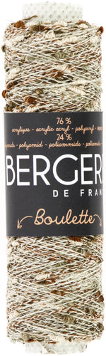 BERGERE DE FRANCE-Boulette. This novelty yarn with multi-colored buttons is used with other yarns to create the illusion of tweed to knits. Content: 76% acrylic, 24% polyamide. Putup: .88oz/25g, 235yd/215m. Dyelotted: we try but are not always able to match dyelots. Care: machine wash in cold water on gentle cycle, dry flat. Comes in a variety of colors. Each sold separately. Imported.