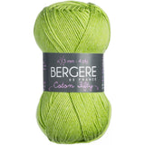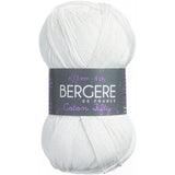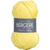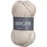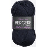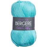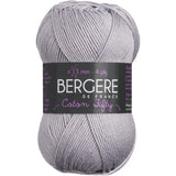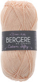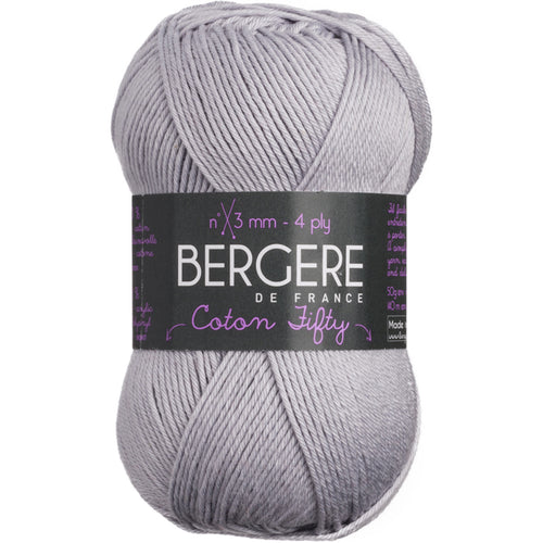 Bergere De France-Coton Fifty Yarn. This fine, but not too fine, round yarn yields an even knit in basic stitches and is easy to care for. Weight category: 2. Content: 50% cotton/50% acrylic. Putup: 1.75ox/50g, 153yd/140m. Gauge: 26sx37r = 4in/10cm on size 3mm knitting needles. Dyelotted: we try but are not always able to match dyelots. Care: machine wash, machine dry, do not bleach, press, dry clean using P solvents. Comes in a variety of colors. Each sold separately. Imported.