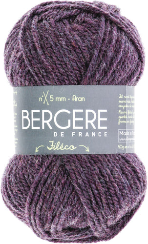 Bergere De France-Fileco Yarn. This yarn is subtly iridescent and is made from recycled materials. It is highly recommended for beginners. Weight category: 4. Content: 60% acrylic, 18% recycled acrylic, 12% recycled wool, 6% recycled polyamide, 4% mix of recycled fibers. Put Up: 1.75oz/50g, 93yd/85m. Gauge: 16sx20r = 4in/10cm on size US8/5mm knitting needles. Suggested crochet hook size: H8. Dyelotted: we try but are not always able to match dyelots. Care: machine wash, dry flat, press, do not bleach, cry clean using P solvents. Comes in a variety of colors. Each sold separately. Imported.
