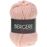 Bergere De France-Magic Yarn. This chunky, even, round yarn will emphasize the beauty of all your hand-knits. Weight category: 4. Content: 50% worsted wool, 50% acrylic. Putup: 1.75oz/50g, 87 yd/80m. Gauge: 16sx22r = 4in/10cm on size US9/5.5mm knitting needles. Dyelotted: we try but are not always able to match dyelots. Care: machine wash, machine dry, do not bleach, do not iron, dry clean using P solvents. Comes in a variety of colors. Each sold separately. Imported.