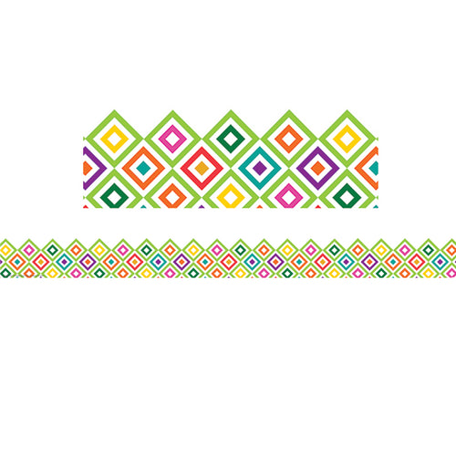 Use Eureka School Extra Wide Deco Trim to add a finishing border to your displays, windows, doorways or chalkboards. Vibrant colors plus a variety of styles and themes can add creativity to displays, windows, chalkboards and more. A Sharp Bunch Diamond Pattern Extra Wide Die Cut Deco Trim measures 3.25" wide, and each package contains 12 strips (each 37" long) for a total of 37 feet. Full color illustration printed on card stock. Fun die-cut edge detailing. Coordinates with the A Sharp Bunch Collection.