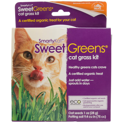 WORLDWISE-SmartyKat: SweetGreens Cat Grass Kit. This makes healthy greens that cats crave! Just add water and they will sprout in days. This package contains 1 oz of oat seeds and 9.4 cubic inches of potting soil. SmartyKat products are principally made from recycled, reclaimed, renewable and certified organic materials. Imported.