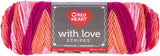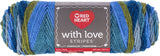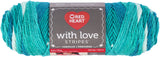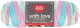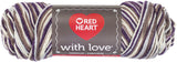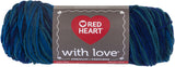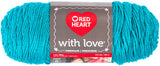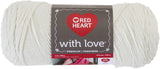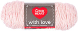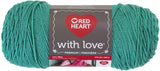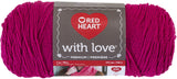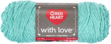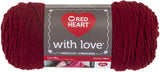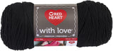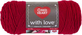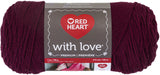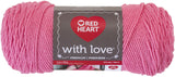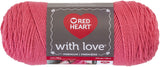 RED HEART-With Love. A premium acrylic worsted weight yarn. This yarn wins all hearts for its softness and sheer touchability. It comes in over 30 beautiful shades of mixable multis and no-dyelot solids. Weight category: 4. Content: 100% acrylic. Putup: Solids- 7oz/198g, 370yd/338m. Multis