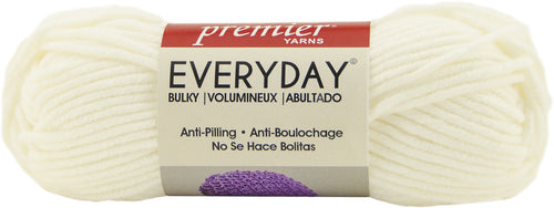 Premier Yarns-Everyday Bulky. Let Everyday Bulky bounce into your stitching basket! Bright, bold, modern colors give this springy super bulky yarn a fun look. Projects stitch up in a flash, helping you wrap yourself and your family in the soft, anti-pilling acrylic. The anti-pilling acrylic will keep that bright, just-made look, wash after wash. Weight category: 6. Content: 100% acrylic anti-pilling. Putup: 3.5oz/100g, 87yd/80m. Gauge: 10sx12r = 4in/10cm on size US13/9mm knitting needles. Suggested crochet hook size: USM13/9mm. Care: Machine wash warm. Tumble dry normal. Do not iron. Do not dry clean. Do not bleach. Comes in a variety of colors. Each sold separately. Imported.