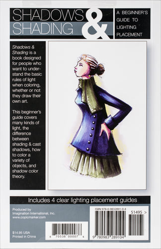 COPIC MARKER-Shadows & Shading. A beginner's guide to light placement. Shadows & Shading is a book designed for people who want to understand the basic rules of light when coloring, whether or not they draw their own art. This beginner's guide covers many kinds of light, the difference between shading and cast shadows, how to color a variety of objects, and shadow color theory. Also includes four clear lighting placement guides. Author: Marianne Walker. Softcover Spiral Bound: 52 pages. Made in USA.