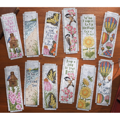 BUCILLA-Counted Cross Stitch Kit. This set allows you to make a variety of great bookmarks. This package contains a 14 count aida cloth, cotton embroidery floss, floss separators, needle, trilingual instructions and chart. Design size: twelve 2-1/2x8 inch bookmarks. Design: Inspired By Nature. Made in USA.