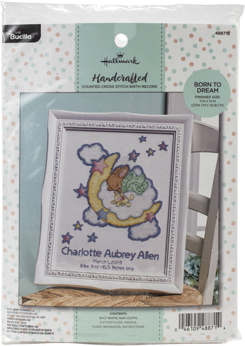 With its whimsical design, this birth record kit is perfect for baby showers and christenings and is a wonderful addition to any nursery decor. This 6.75x9 inch package contains 14 count white Aida fabric, cotton embroidery floss, floss separator, needle and instructions. 11x14 inches when finished. WARNING: Choking Hazard. Not suitable for children under 3 years. WARNING: May contain items with sharp edges. Handle with care. Imported.