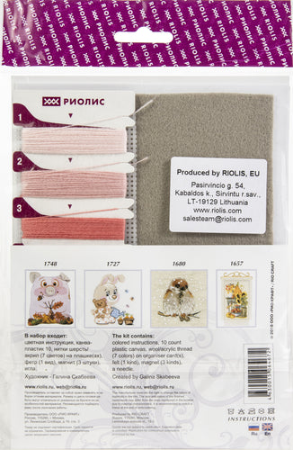 RIOLIS-Counted Cross Stitch Kit. Express your love for arts and crafts with these beautiful cross stitch kits! Find a themed kit for any taste! This package contains 10 count plastic canvas, Safil wool/acrylic yarn in seven colors, one kind of felt, one needle, instructions and color chart. Design: Magnets Piglets. Finished Size: 2x2 inches. Imported.
