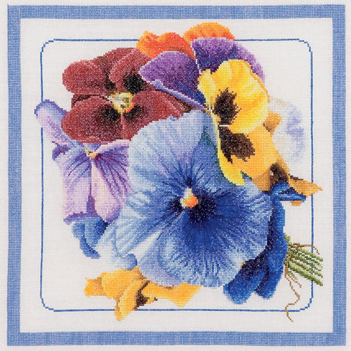 THEA GOUVERNEUR-Pansies On Aida Counted Cross Stitch Kit: Eighteen Count. Inspired by nature, these kits are detailed using a variety of colors with results that are realistic and true to nature! The more experienced cross stitcher will enjoy working on linen. This package contains one 13-13/32x13-13/32 inch piece of linen Aida, pre-sorted DMC floss, one John James needle, one easy-to-follow chart and instructions in English. Imported.