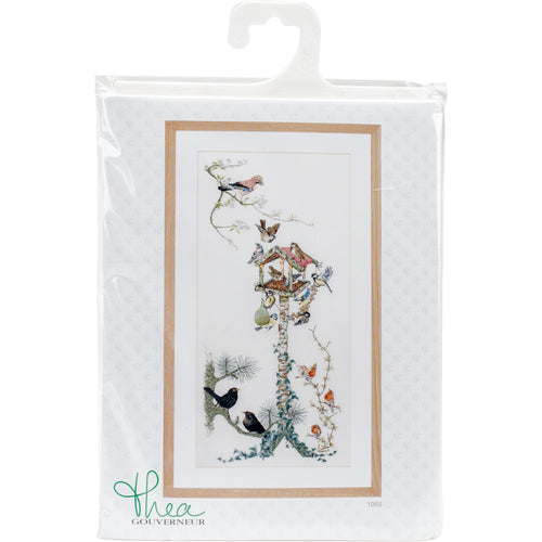 Thea Gouverneur-Aida Counted Cross Stitch Kit: 18 Count. Inspired by nature, these kits are detailed using a variety of colors with results that are realistic and true to nature! This package contains one 39-1/4x17-3/4 inch piece of Aida cloth, pre-sorted DMC floss, one John James needle, one easy-to-follow chart and instructions in English. Design: Bird Table. Imported.