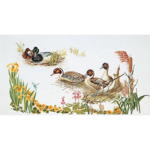 THEA GOUVERNEUR-Ducks On Aida Counted Cross Stitch Kit: Eighteen Count. Inspired by nature, these kits are detailed using a variety of colors with results that are realistic and true to nature! The more experienced cross stitcher will enjoy working on linen. This package contains one 25-13/64x13-13/32 inch piece of linen Aida, pre-sorted DMC floss, one John James needle, one easy-to-follow chart and instructions in English. Imported.