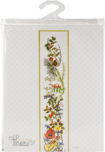 Seasons Bell Pull on Aida Counted Cross Stitch Kit: 18 Count. Inspired by nature, these kits are detailed using a variety of colors with results that are realistic and true to nature! This package contains one 46.1x6.3 inch piece of white Aida fabric, pre-sorted DMC floss, one John James needle, one easy-to-follow chart and instructions in English. Imported.