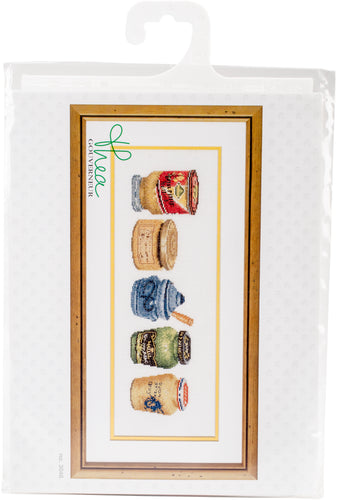 Inspired by nature, these kits are detailed using a variety of colors with results that are realistic and true to nature! This package contains one 14x6.25 inch piece of 18 count Aida cloth, pre-sorted DMC floss, one John James needle, one easy-to-follow chart and instructions in English. Design: Mustard Pot. Imported.