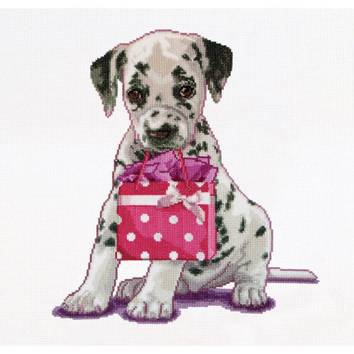 THEA GOUVERNEUR-Puppy Went Shopping On Aida Counted Cross Stitch Kit: Sixteen Count. Inspired by nature, these kits are detailed using a variety of colors with results that are realistic and true to nature! The more experienced cross stitcher will enjoy working on linen. This package contains one 12-13/64x11-13/16 inch piece of linen Aida, pre-sorted DMC floss, one John James needle, one easy-to-follow chart and instructions in English. Imported.