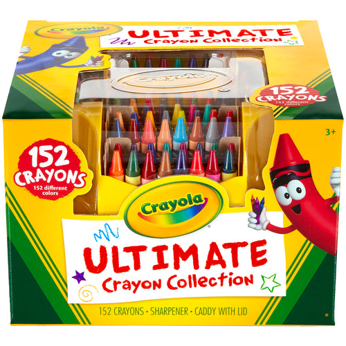 CRAYOLA-Ultimate Crayon Collection With Sharpener And Caddy. Proudly display your Crayola crayons with the ultimate crayon collection! This multi-tiered, four-sided case lets you organize and find crayons easily! And with so many to choose from, you are ready for even the most detailed coloring projects. This package contains 152 crayons (all in different colors), one crayon sharpener and one 4-1/4x6-1/4x6-1/4 inch caddy with a lid. Recommended for ages 3 and up. WARNING: Small Parts. Not suitable for children under 3. Non-toxic. Conforms to ASTM D 4236. Made in USA.