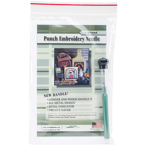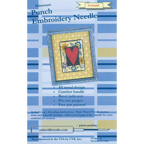 CTR-Punch Embroidery and Felting Needles and Handles. Whether punch embroidery or felting is your passion, CTR has the needle and/or handle you need. All are made of high quality materials designed to be comfortable for hours of use. Handles are Anodized and light weight, precision needle holes for secure attachment, easy twist-off top for easy needle replacement (needle not included). Needles feature all metal design, comfort handles, bevel indicator, pre-cut gauges, and free pin pattern. Needle accessories include such items as threaders, gauges and a clear plastic Haystack box. All Needles, handles, threaders and gauges come in a convenient and secure clear plastic storage tube for safe storage. Made in USA.
