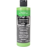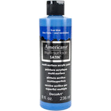 DECO ART-Americana Multi Surface Satin Acrylic. This multi-surface paint will give a durable, opaque satin finish! It works great with wood, metal, glass, terra cotta, ceramics, paper mache, most plastics, fabric and canvas. For indoor and outdoor use. This package contains an 8 oz bottle of satin acrylic. Available in a variety of colors, each sold separately. Conforms to ASTM D 4236. Made in USA.