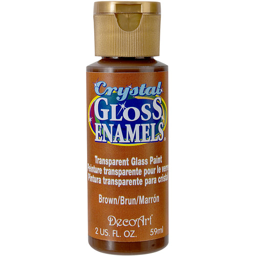 DECOART-Americana Crystal Gloss Enamels Glass Paint. This brush-on paint features a beautiful jewel-tone color. It is transparent when dry and is ideal for use on glass, glazed ceramics, and other smooth surfaces. This package contains 2 Fluid Ounces. Conforms to ASTM D4236. Made in USA.