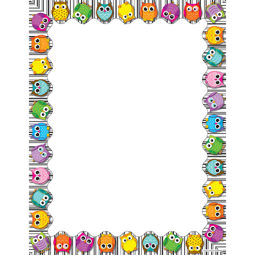 Use this whimsical, delightful Colorful Owls design to promote your classroom theme! So many uses to liven up projects, writing assignments, class newsletters and more! Add style to personalized awards, letters and lists--the possibilities are endless! Look for coordinating products in this design to create this popular classroom theme! Comes in 50 sheets per pack.