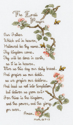 JANLYNN-Counted Cross Stitch Kit. Creative designs and quality products are put in to each of Janlynn's kits. This kit contains 14 count white Aida, 6-strand 100% cotton floss, needle, graph, and instructions. Design: The Lord's Prayer. Finished dimensions: 10x5-1/2 inches (mat and frame are not included). Made in USA.