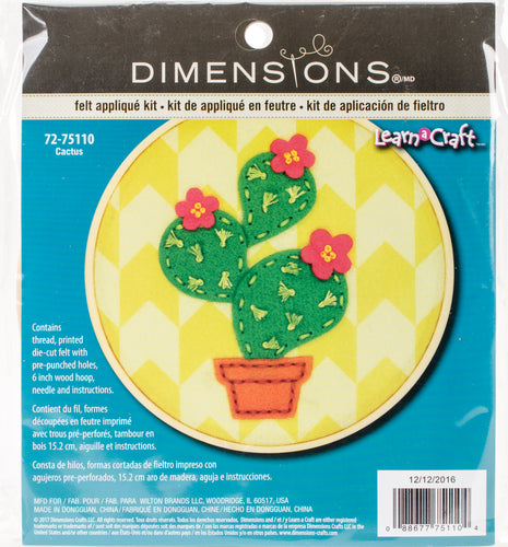 Learn a classic art! This collection of needle art kits are perfect for beginners with their simple yet fun designs. This package contains thread, printed die-cut felt with pre-punched holes, one 6 inch hoop, one needle and easy to follow instructions. Finished size: 6 inches. Design: Cactus. Imported.