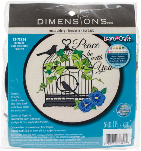 Learn a classic art! This collection of needle art kits is perfect for beginners with their simple yet fun designs. This kit contains design pre-printed ivory fabric, 6 inch embroidery hoop, presorted thread, needle and easy to follow instructions. Finished size: 6 inches. Design: Birdcage. Imported.