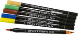 ZIG-Art & Graphic Twin: 6 Piece Set. These water-based dye markers are ideal for crafters of all kinds: designers, illustrators, rubber stampers, card makers, scrapbookers and more! The convenience of two tips styles (Brush and .8mm) make them perfect for any and every project! This package contains six 7-1/2 inch long dual tip markers. Available in a variety of color sets: each sold separately. Xylene free. Conforms to ASTM D-4236, ACMI certified. Imported.