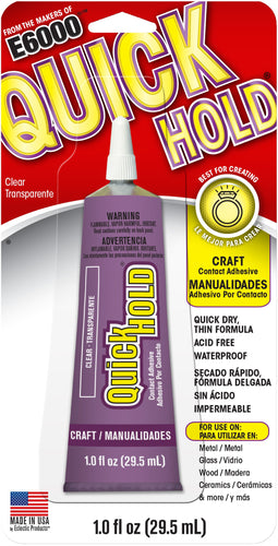 ECLECTIC-Quick Hold All Purpose Craft Adhesive & Sealant. This thin formula adhesive & sealant is perfect for all of your crafting needs: sets in 2-3 minutes, fully cures in 2-6 hours, is waterproof, paintable when dry and works on metal, wood, glass, ceramic and much more! This package contains one 1oz/30ml tube. Made in USA.