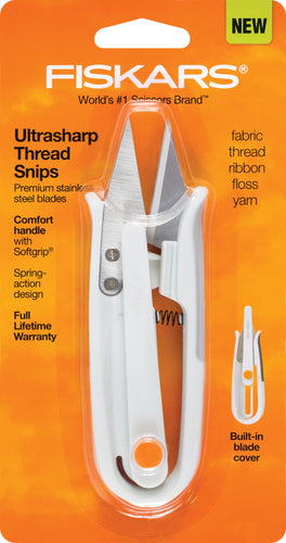 Quickly and precisely snip fabric and thread with this ultrasharp, compact design. Ideal for precisely cutting thread, ribbon, floss, yarn and multiple layers of fabric. This package contains one 5 inch pair of scissors with built-in blade cover. Imported.
