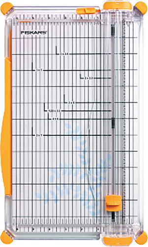 FISKARS-Premium Cut-Line Trimmer. This trimmer allows you to cut with confidence due to the wire cut-line that shows you exactly where the blade will cut. Other features include a larger workspace (6-1/4in), a self-leveling 15in ruler for precise measuring of larger paper, a lightweight design with rail lock to make it portable, and easy cutting action with a high profile handle. This package contains one 14-1/2x8-1/2x1/2in paper trimmer with blade. Uses blade style I replacement blades (not included). Caution: Sharp blade-handle with care. Imported.