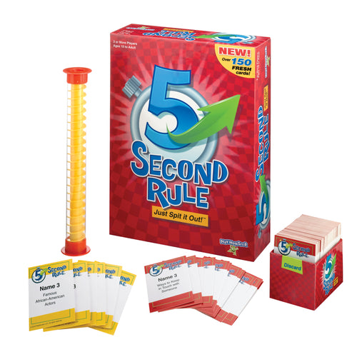 Now with more than 150 new cards! It should be easy to name 3 breeds of dogs”but can you do it under the pressure of 5 seconds twisting down, and with the other players staring at you, waiting for you to get flustered? Time's not on your side, so just say what comes to mind and risk ridiculous answers slipping out as time twirls down on the unique twisted timer! It's all in good fun with this fast-paced game where you have to Just Spit it Out!„ For 3 or more players, ages 10 and up. Contents: 576 Questions on 288 Cards, 5-Second Twisted Marble Timer, Rules.