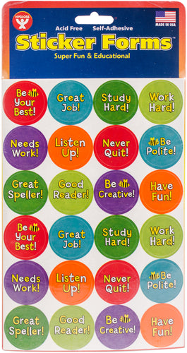 Use as a great incentive tool to motivate kids to do their best! Perfect for classroom assignments, homework, quizzes or to share with friends! Hygloss stickers coordinate great with classroom borders, name plates, library pockets, calendars, calendar bulletin board kits and schedule cards. This package contains 72 stickers on three 4.5x6.75 inch sheets. Acid Free. Made in USA.