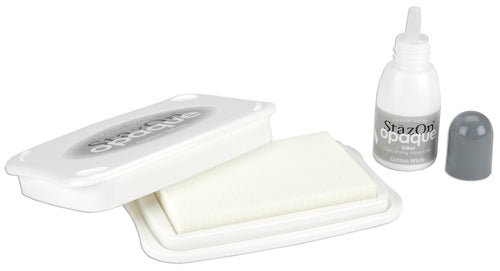TSUKINEKO-Staz-On Opaque Inkpad W/Re-inker Kit. Staz-on is a solvent-based ink designed for decoration on non-porous surfaces such as glass, metal, shrink plastic, cellophane, aluminum foil, leather and acrylic. You will achieve a beautiful stained glass appearance due to the transparent nature of the ink. Mild smell and safe to use. Acid-free and water soluble for easy clean up. Refill your ink pad or use it straight from the bottle. This package contains one 2-1/2x4x3/4in dry stamp pad and 0.5oz/14.78ml of ink. Imported.