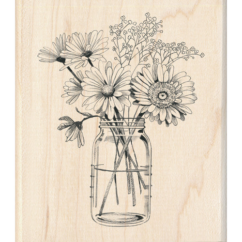 Inkadinkado-Wood Mounted Rubber Stamps. These rubber stamps feature a hardwood base with an indexed edge to make the stamp easier to hold and a precisely cut deeply etched rubber design layer that will leave clear, crisp, highly detailed images on most surfaces. This package contains Floral Mason Jar: one red rubber stamp mounted on one 4x3-1/2 inch block. Imported.