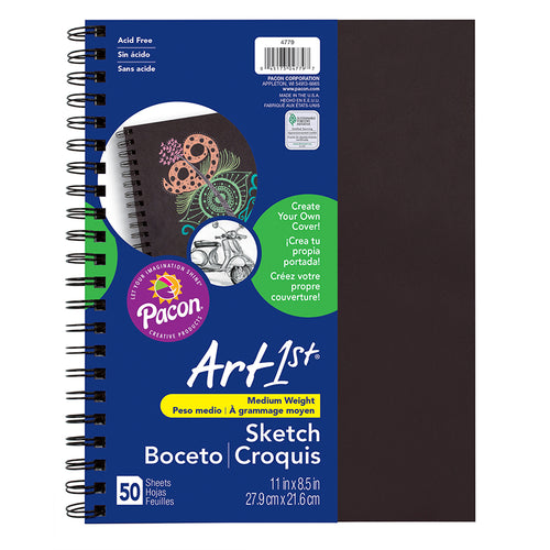 Sturdy Black chipboard cover and back make this versatile sketch diary fun to decorate and personalize with metallic pens, markers and gel pens. Standard weight White drawing paper inside is perfect for teens, students and young adults. Acid free. Recyclable. Measures 11" x 8.5". Includes 50 sheets.