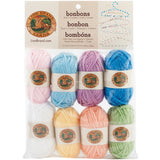 LION BRAND YARN-Bonbons. These miniature skeins of yarn are perfect for any project requiring multiple colors such as amigurumi, colorwork, embroidery, and embellishments. Each package contains eight miniature skeins of yarn. Available in a variety of color sets (each sold separately). Weight category: 3. Content: 100% acrylic, 0.35oz/10g, 28yd/26m. Knitting gauge: 21st x 29r = 4in/10cm on US6/4mm needles. Crochet gauge: 16sc x 20r = 4in/ 10cm with I/9/5.5mm hook. Care: Machine washable and dryable, do not bleach, do not iron, may be dry cleaned. Imported.