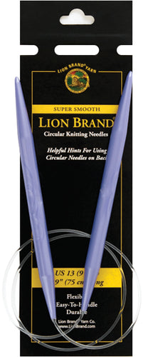 LION BRAND-Circular Knitting Needles. Enjoy speedy, quiet knitting with these plastic plated needles from Lion Brand. The cord is soft and durable. This package contains one pair of US size 13 (9mm) circular knitting needles with 29 inch (75cm) cord. Imported.