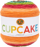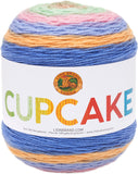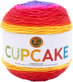 Lion Brand-Cupcake Yarn. Just like its name, everything delicious is in one cake of this CYC 3 100% acrylic yarn. Beautiful color combinations, great stitch definition and enough yardage to make a baby blanket, shawl, or hat and cuff set. You will want to collect every color way. Content: 100% Acrylic. Putup: 5.3oz/540gr. 590yd/540m. Gauge: 22sx30r = 4in/10cm on size US5/3.75mm knitting needles. Suggested crochet hook size USH8/5mm. Dyelotted; we try but are not always able to match dye lots. Care: machine wash, machine dry. Comes in a variety of colors. Each sold separately. Imported.