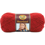 LION BRAND-Heartland Yarn. This medium weight yarn offers a super soft hand with an exquisite sheen. Perfect for knit and crochet projects. Weight Category: 4. Content: 100% acrylic. Putup: 5oz/142g, 251yd/230m. Gauge: 16sx22r = 4in/10cm on size US9/5.5mm knitting needles. Suggested crochet hook size J10/6mm. Dyelotted: we try but are not always able to match dyelots. Care: Machine wash, dry flat, do not bleach, do not iron, dry cleaner safe when using P solvents. Made in USA.