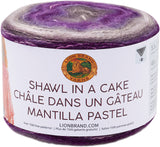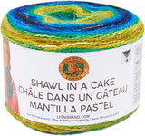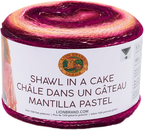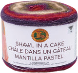 Lion Brand Yarn-Shawl in a Cake: From romantic to classic, frilly to functional, handmade shawls are all the rage in the yarn world. Shawl in a Cake is the perfect yarn created specifically for beginner shawl makers and experts alike. Beginners can create show-stopping accessories using the simplest knit or crochet stitches. The self- striping brushed acrylic, run with a 100% cotton slub, has the look and feel of silk mohair. There is a color-way for every personality: you will want to collect all 18! And the best thing is one ball makes your entire project. Content: 61% cotton, 34% acrylic, 5% other. Putup: 5.3oz/150gr 481yd/440m. Gauge: 17sx25r = 4in/10cm on size US8/5mm knitting needles. Suggested crochet hook size USJ10/6mm. Dyelotted; we try but are not always able to match dyelots. Care: machine wash gentle, dry flat, do not bleach, do not iron, dry clean only using P solvents. Comes in a variety of colors. Each sold separately. Imported.